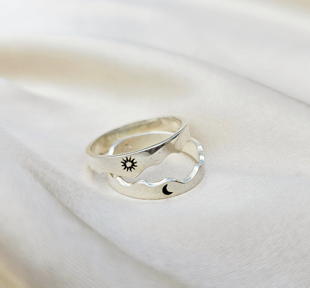 - Anillos de pareja con grabado sol y luna