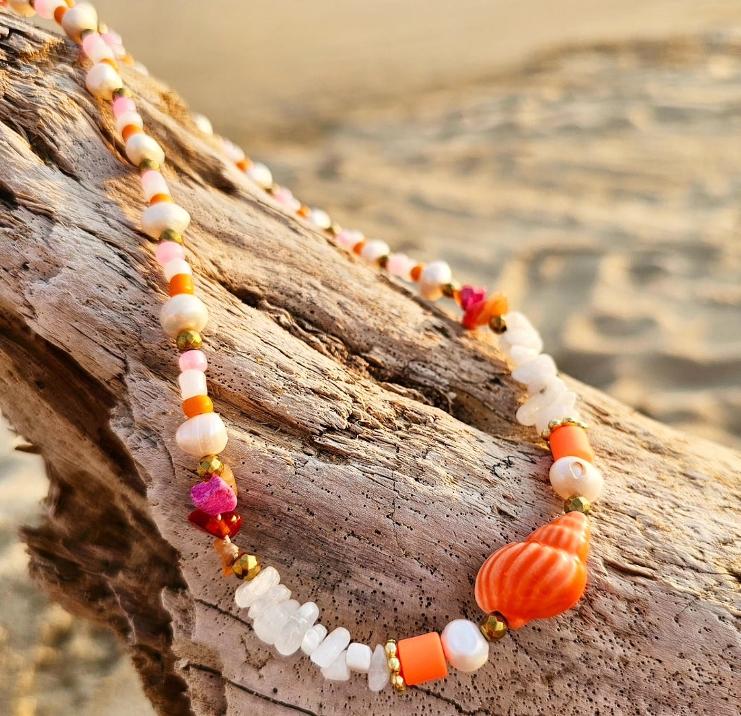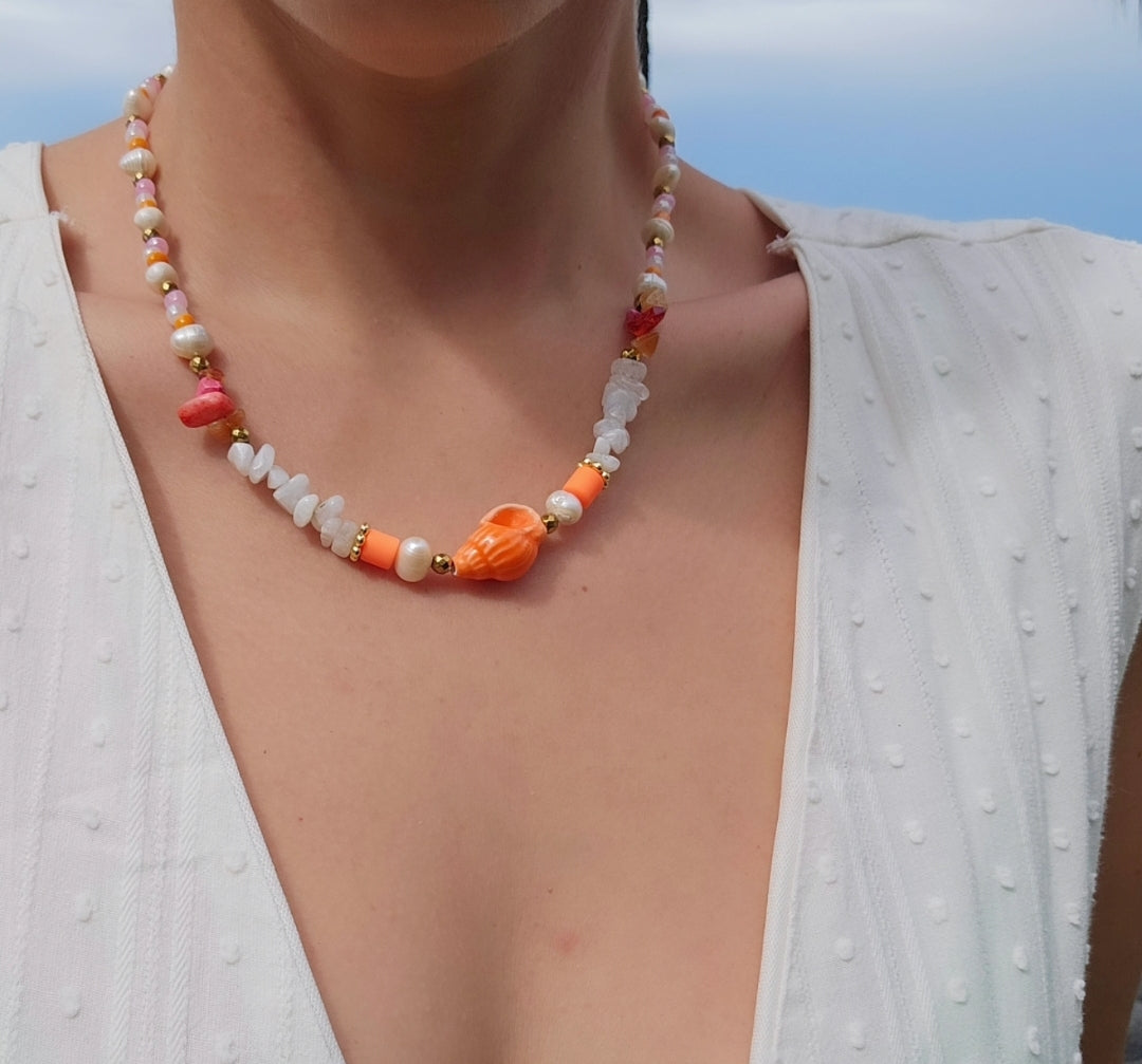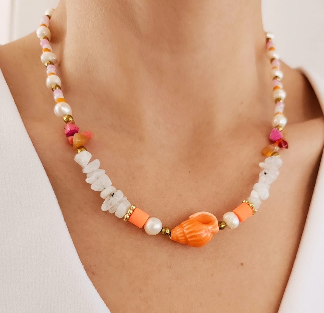 - Collar con perlas cultivadas, cuarzo blanco