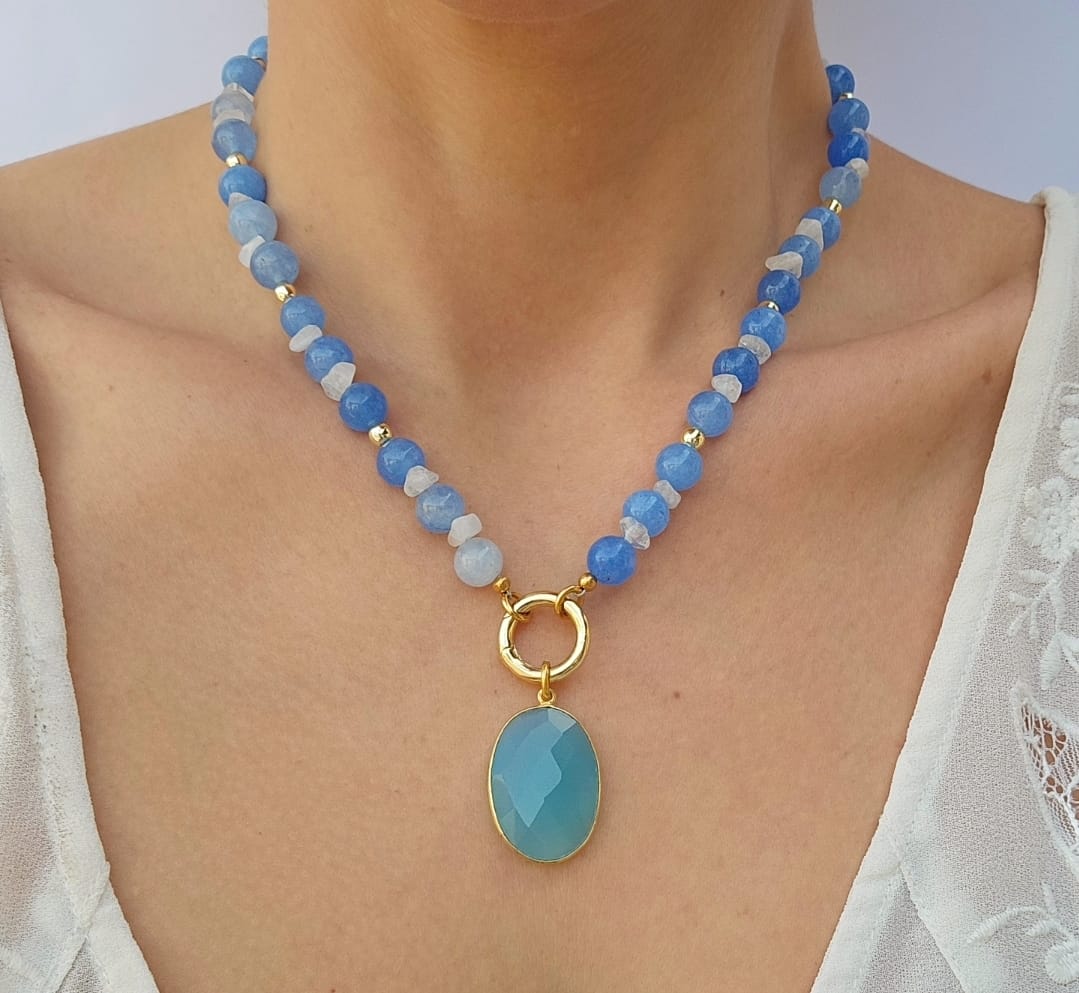 - Collar con jade y cuarzo blanco